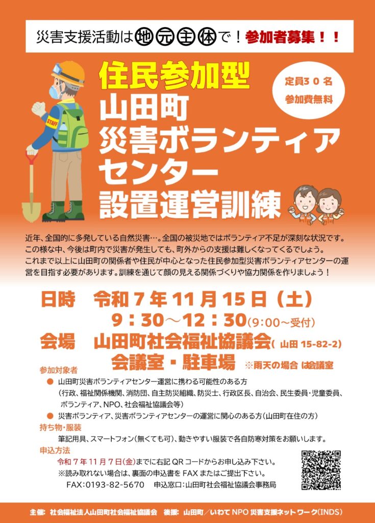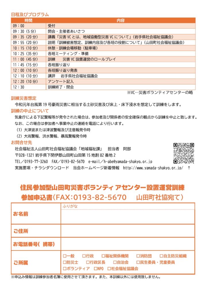 令和7年度住民参加型山田町災害ボランティアセンター設置運営訓練の開催について